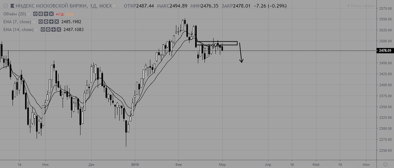 Индекс МосБиржи дважды ложно пробил уровень сопротивления, однако, закрытие дня было ниже, так что разворота не случилось.