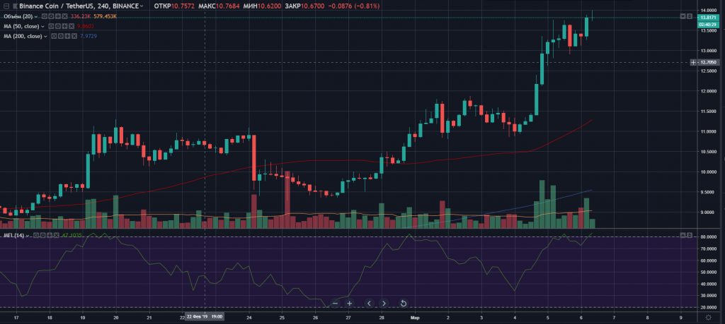 Ускорение роста токена BNB предположительно связано с анонсом нового токенсейла на платформе Binance Launchpad. Также восходящее движение цены может быть обусловлено позитивными ожиданиями, связанными с полноценным запуском децентрализованной биржи Binance DEX.