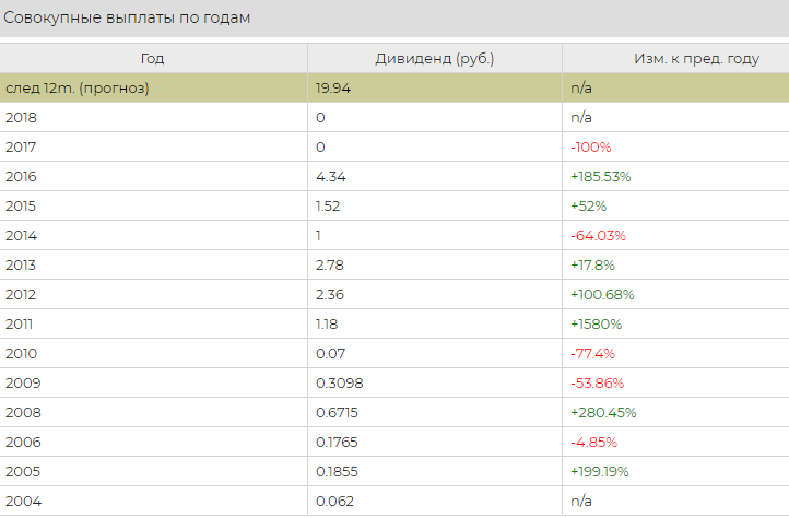 Как видим из таблицы ниже, Нижнекамскнефтехим выплачивает дивиденды хоть и не каждый год, но они из года в год растут, как и чистая прибыль.