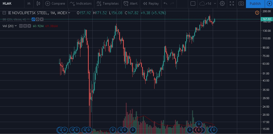Дивидендная доходность при текущей цене на акции компании составляет 3,50%. По итогам 2018 года дивиденды в годовом выражении станут рекордными и принесут своим акционерам более 13% дивидендной доходности. Таким образом, акции Группы НЛМК являются одной из лучших дивидендных историй на Московской бирже.