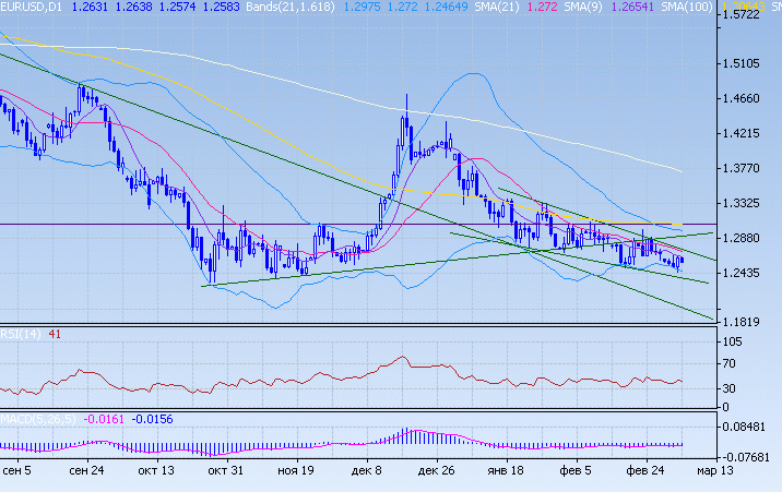 Евро удалось подрасти, несмотря на сильное давление со стороны доллара. В курсе заложено снижение ставок со стороны ЕЦБ на 50 б.п. Решение ЕЦБ по ставкам и комментарии Трише будут иметь важное значение в сессию четверга. Торговля ведется между понижательным сопротивлением (1,2730) и понижательной поддержкой (1.2370). Ключевое значение имеют уровни в области (1,2440-1,2320).