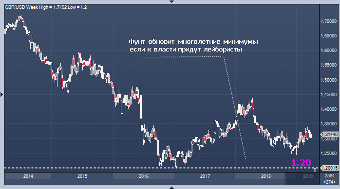 Внеочередные выборы, которые приведут к формированию лейбористского правительства, могут отправить фунт к самым слабым уровням за последние 30 лет. Такой исход серьезно ограничил бы способность Банка Англии (BOE) нормализовать монетарную политику и спровоцировал бы новый медвежий уклон в фунте. Потенциал формирования правительства лейбористов становится все более высоким на фоне событий вокруг Brexit на этой неделе.