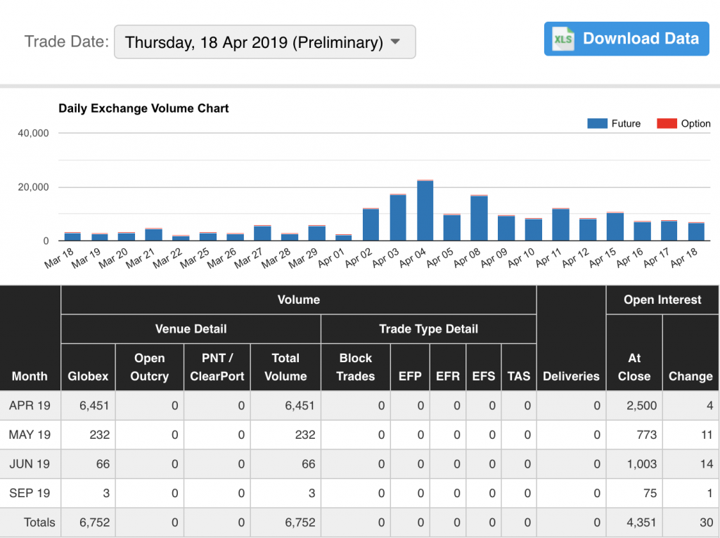 На бирже CBOE никаких изменений — нули в этой категории. Допускаю, что они уже давно перешли на CME, так как биржа еще пока предоставляет новые фьючерсные контракты.