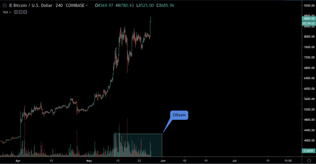 На графике BTC/USD биржи Coinbase следует обратить внимание на повышенный объем торгов. Он говорит о возросшем ажиотаже, который, в частности, указывает на оздоровление рынка после глобальной просадки.
