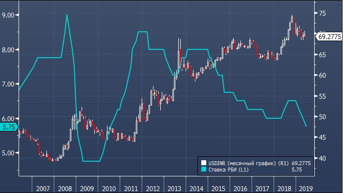 Резервный Банк Индии в четверг отказался от нейтральной денежно-кредитной политики, которой он придерживался с февраля, и снизил ставку репо с 6.00% до 5.75%, что стало её минимальным значением с 2010 года. Решение было принято на фоне недавней публикации данных по ВВП, которые просигнализировали о самом слабом росте экономики за последние пять лет — в первом квартале он замедлился до 6.8% г/г.