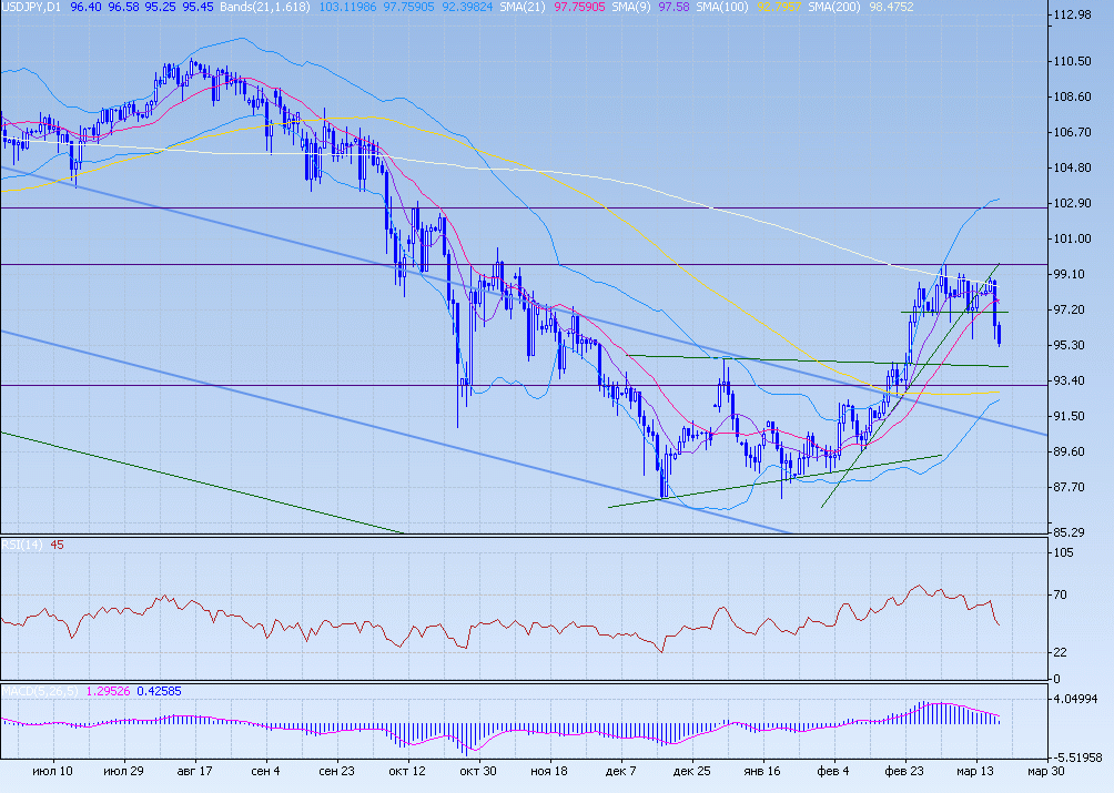 В текущую сессию ожидаем роста йены. Цель: 94,70/94,20