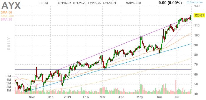 Достичь этого уровня, как пояснили в компании, позволит оптимизация затрат на продажи, маркетинг и персонал. Выручка компании растет огромными темпами, но все еще объективно низка для ИТ-индустрии ($266 млн за 2018 год), так что связанная с ее бумагами инвестидея сопряжена с повышенным риском. Основное конкурентное преимущество Alteryx заключается в более высокой, чем у конкурентов, операционной маржиналь- ности. Если прогноз менеджмента по ее улучшению оправдается за счет роста продаж, то акции компании легко превысят целевую цену, которая на сегодня равняется $143.