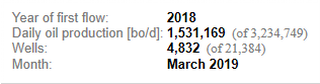 К концу марта 2019 г. те же 4832 скважины показали сокращение добычи на 514863 б/д до 1531169 б/д или на 25,17%. Многим аналитикам нравится называть этот спадом в "старых" скважинах, но можно представить, что случиться с американской "сланцевой революцией", если не будет пробурено больше скважин ...
