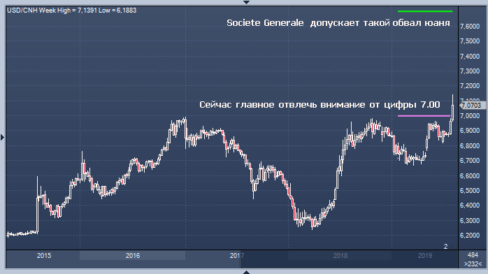 Президент США Дональд Трамп пригрозил ввести дополнительные тарифы на китайские товары, к тому же НБК может ослабить своюденежно-кредитную политику, чтобы подстегнуть импульс роста экономики. В среду центральные банки Новой Зеландии, Индии и Таиланда неожиданно понизили процентные ставки, что вызвало опасения полномасштабной валютной войны. Тем не менее, Китай будет стремиться избежать повторения событий 2015–2016 годов, когда разовая девальвация подтолкнула компании и частных лиц к вывозу денег из страны.