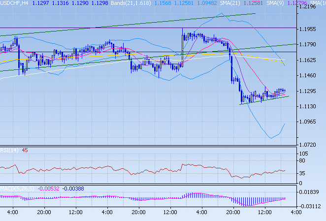 Пара консолидируется по краткосрочной повышательной поддержке. Пересечение скользящих средних порядка 9 и 21 на четырехчасовом графике не в пользу свисси. Сопротивление оказывают отметки на 1,1295/1,1330. Ожидаем продолжения флэта и продолжения роста свисси после прорыва поддержки.