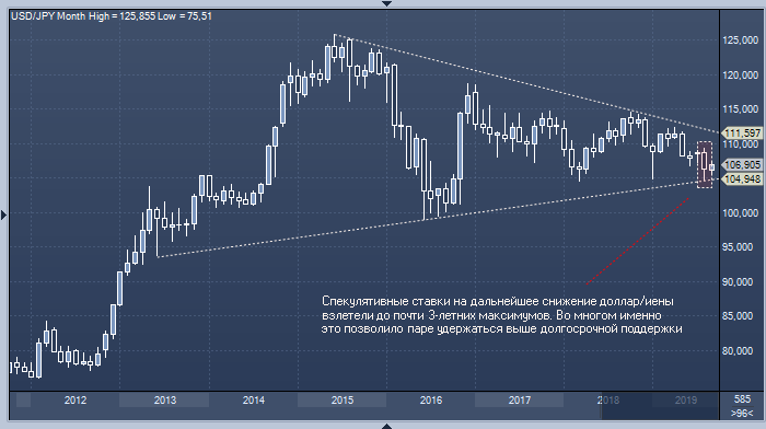иена: спекулянты сократили чистую длинную позицию примерно на 5%. В предыдущий отчетный период она достигала рекордных значений с ноября 2016 года (см. график ниже);