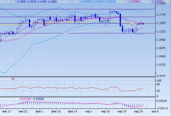 В текущую сессию ожидаем консолидации, роста франка. Цель: 1,1395/1,1350
