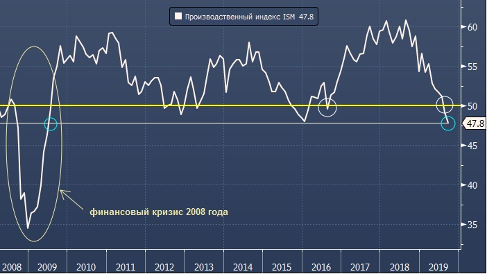 Но все изменилось во вторник, когда Институт управления поставками опубликовал производственный индекс деловой активности ISM за сентябрь, который упал до самого низкого уровня за 10 лет и погрузился в зону, сигнализирующую замедление активности.