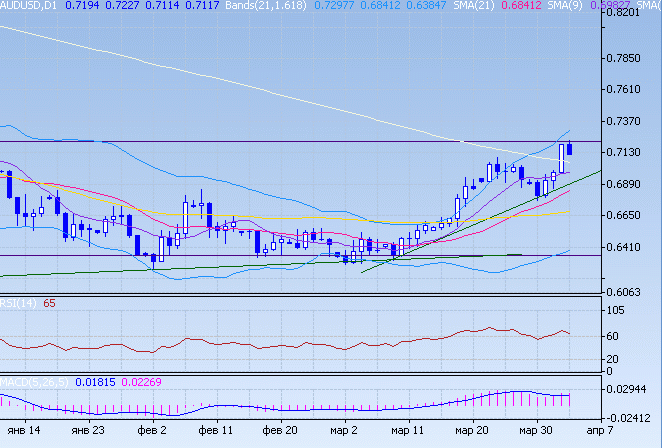 Аусси вырос под сопротивление 0,7210 затем резко откатился. Прорыв этого сопротивления станет важным сигналом к росту аусси, хотя это маловероятно. Коррекция аусси вероятно продолжится к отметкам в районе 0,7040 откуда начнется рост.