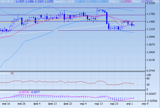 Свисси удалось удержать позиции и вырасти. Картина не изменилась, торговля ведется в диапазоне 1,1495-1,1175. 21-дневная скользящая средняя оказывает евро сопротивление, 9-дневная средняя выступает поддержкой. Прорыв 1,1550 врнет пару в верхний ценовой диапазон.