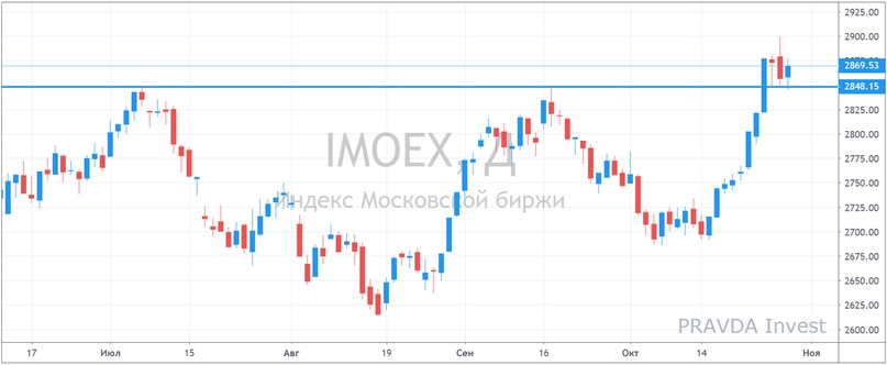 Лукойл растет на новой дивидендной политике и байбэке. Мы писали об этом подробно в нашей новой инвестиционной идее. Также Лукойл опроверг слухи, о возможном выкупе Сургутом доли Вагита Алекперова (основного акционера Лукойла). Газпром в ожидании новой дивидендной политики, ее объявят 28 ноября. ГМК Норникель обновил исторические максимумы после новости о запрете экспорта никеля из Индонезии. А Сбербанк на этой неделе отчитается за 3й квартал по МСФО: ждем хорошей отчетности!