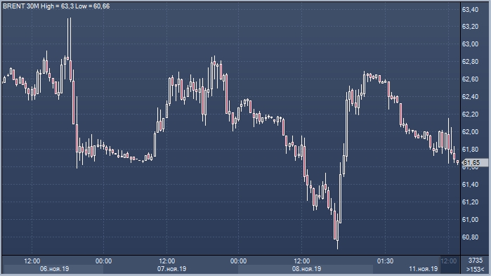 Цены на нефть снижаются на торгах в понедельник, 11 ноября, отодвигаясь от 7-недельного максимума, достигнутого на прошлой неделе. Фьючерсы на Brent снижаются на 1.18% до 67.77 за баррель. Американская легкая нефть WTI дешевеет на 1.42% до 56.42 за баррель.