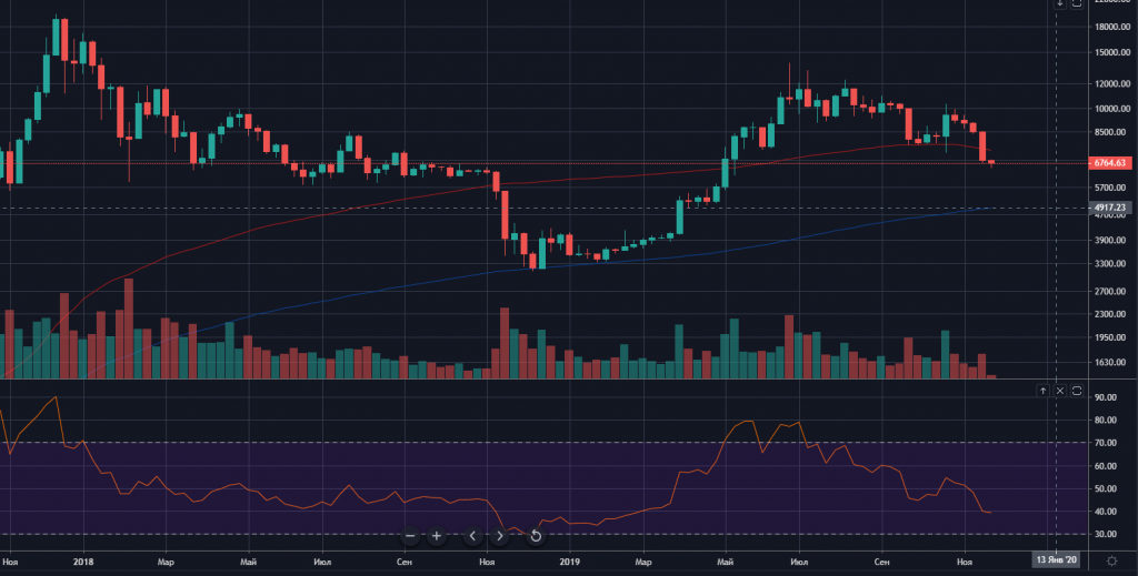 24-25 ноября первая криптовалюта продолжила падение, провалив уровень $7000.