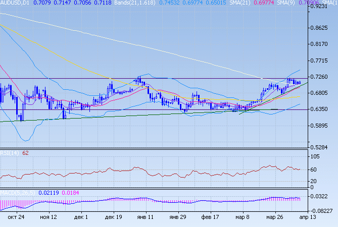 В текущую сессию ожидаем флэта, роста аусси. Цель: 0,7210