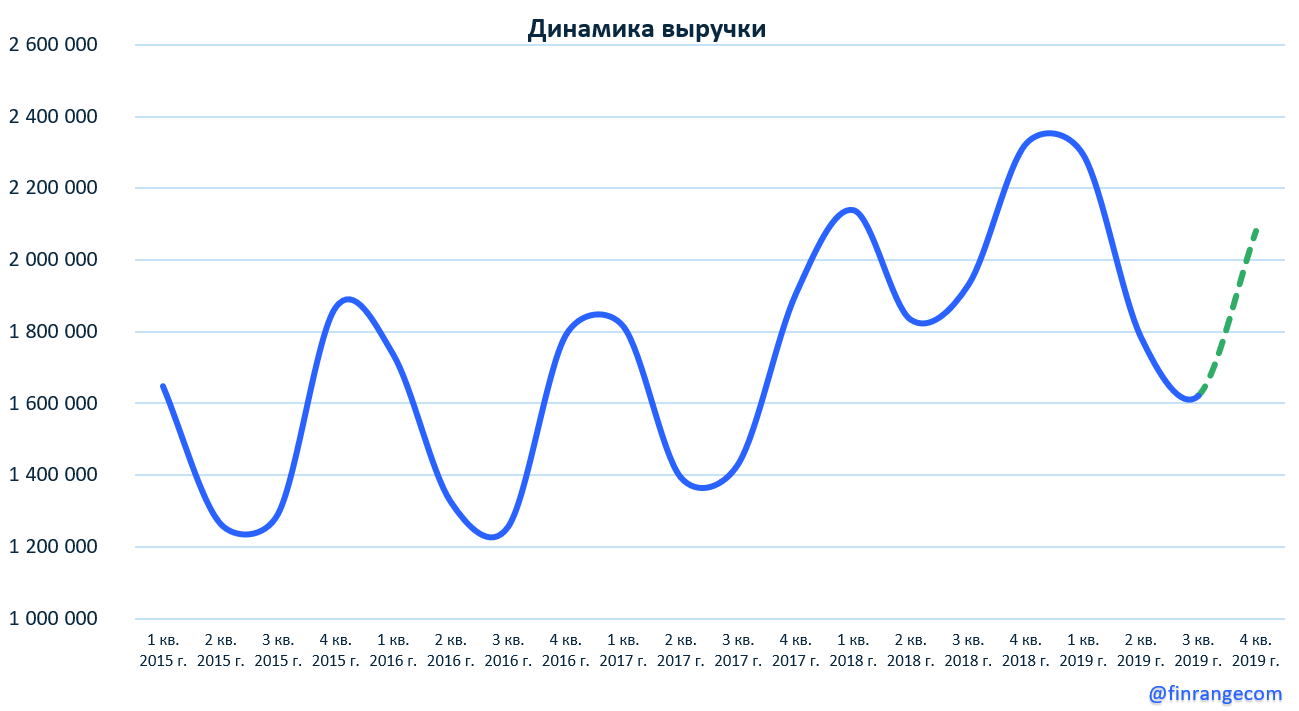 Несмотря на снижение продаж, прибыль за январь – сентябрь выросла на 4% по сравнению с аналогичным периодом прошлого года и составила 1,1 трлн руб. Увеличение прибыли связано в основном с курсовыми разницами, которые отражаются в финансовых доходах в размере 230,8 млрд руб. Также хотим отметить, что III кв. традиционно является слабым из-за сезонного фактора, что в свою очередь сказалось на суммарной прибыли за 9 мес. 2019 г.