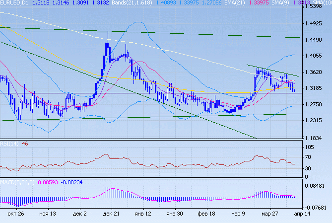 Игроки предпочли закрывать длинные позиции по евро перед праздниками. Евро снизился к отметкам в районе 1,3094 в район поддержки на 1,3060. Пересечение 9-дневной и 21-дневной скользящих средних в сторону снижения евро оказывает на него давление. Прорыв вниз поддержки на 1,3060 значительно ослабит евро. В текущую сессию возможны резкие движения как реакция на любую значимую новость. Тем не менее, индикаторы RSI перепроданы, ожидаем восстановления евро.