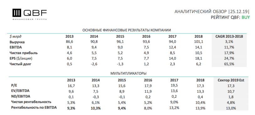 The Boeing Company – (NYSE:BA) американская авиастроительная корпорация и один из крупнейших в мире производителей, авиационной, космической и военной техники. В марте 2019 года произошла вторая катастрофа с участием лайнера Boeing 737 МАХ 8, вследствие которой полеты данных самолетов были приостановлены. Компания уже провела апдейт программного обеспечения и ожидает, что Федеральная авиационная администрация США выдаст разрешение на полеты в 2020 году. Также Boeing объявила о назначении нового СЕО, чтобы вернуть доверие клиентов и регуляторов к компании. В связи с этим аналитики QBF установили целевую цену на акции Boeing на июль 2020 года в $375 и присвоили им инвестиционный рейтинг BUY.