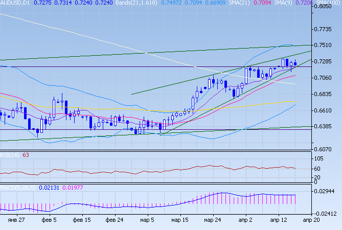 В текущую сессию ожидаем консолидации, роста аусси. Цель: 0,7280/0,7320