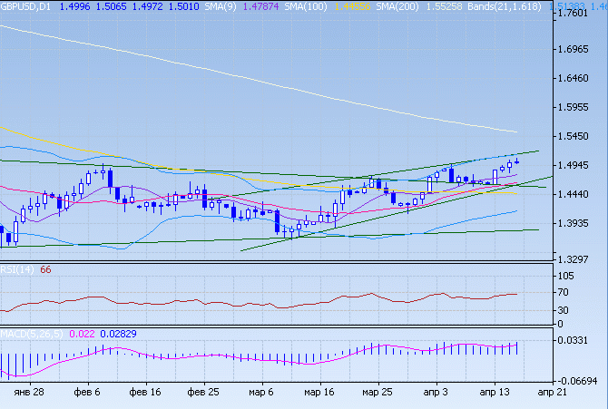 Стерлинг подрос в район 1,5070. Рост кажется неустойчивым и в любой момент стерлинг может провалиться. Сопротивления – 21-дневная скользящая средняя и повышательная линия сопротивления проходят по 1,5140. В случае прорыва сопротивлений стерлинг продолжит рост по направлению к 1,5290. Поддержка для стерлинга проходит по 1,4830. прорыв поддержки приведет к тестированию 9-дневной скользящей и возможно отметок в районе 1,4600.