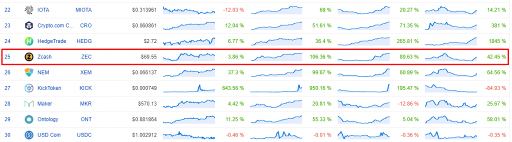 Некогда довольно популярный актив сейчас на 25-й строчке по рыночной капитализации, с начала прошлого года Zcash вырос лишь на 42%. За это время курс биткоина поднялся на 174%, чуть более инфляционный Ethereum — на 91,55%, а Bitcoin Cash и Bitcoin SV выросли на 258% и 437% соответственно.