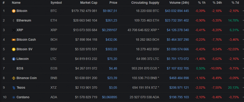 Из первой десятки CoinMarketCap неплохую динамику продемонстрировали Ethereum и Tezos. Остальные монеты немного просели.