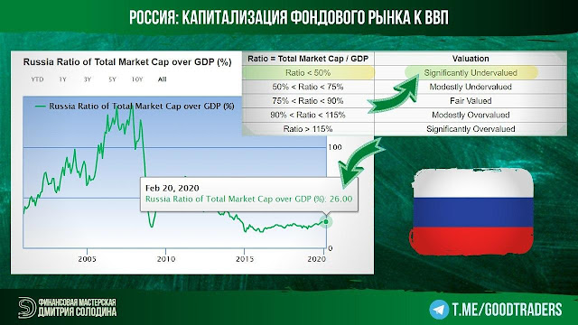 Если этот индикатор уходит ниже отметки 50, то обычно говорят о том, что фондовый рынок дешевый. Если этот показатель уходит выше 100, то фондовый рынок перекуплен.