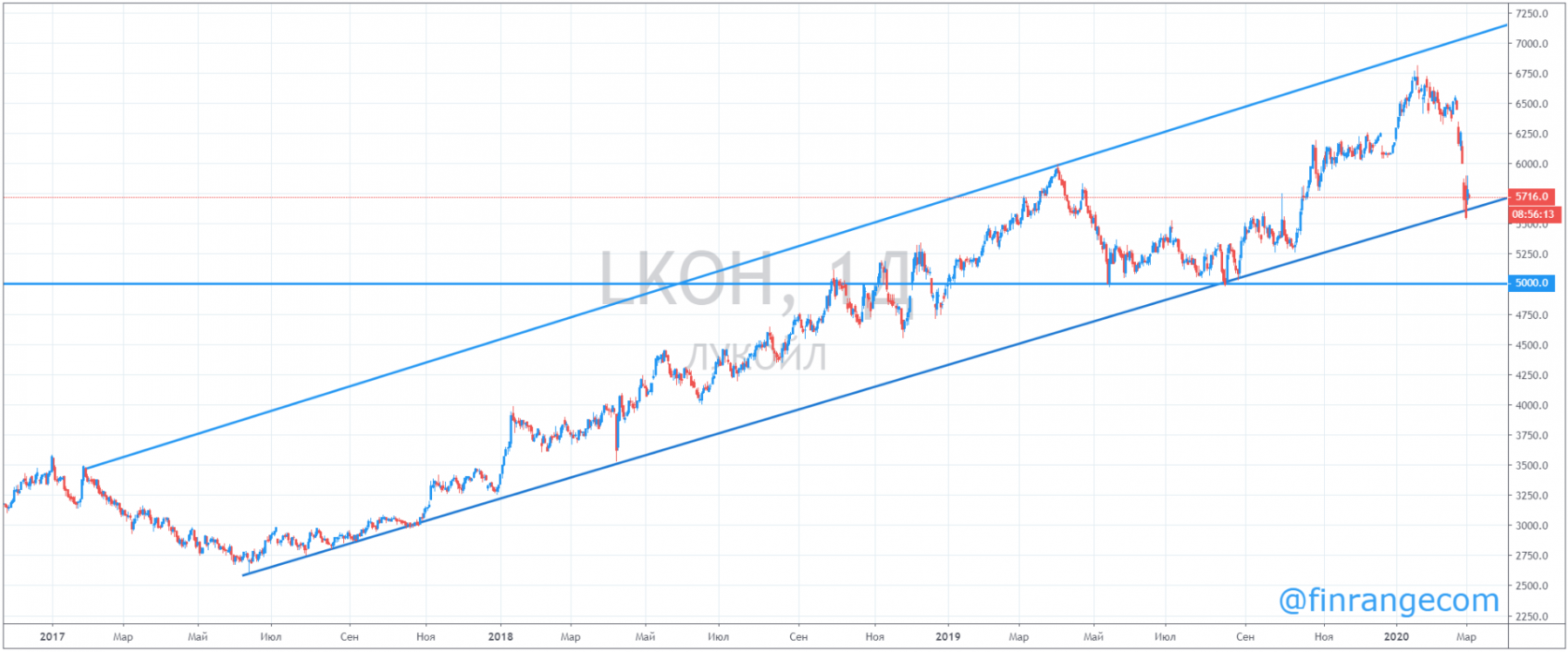 Сегодня купили акции Лукойла на 5% от консервативного портфеля по 5725 руб. после заявления вице-президента компании о рекордных дивидендах, которые совет директоров будет рекомендовать в апреле. О том, что мы хотели купить акции Лукойла, но ждали подходящей точки входа писали не раз, в стратегии и в обзоре финансовых результатах портфеля за февраль 2020 г.