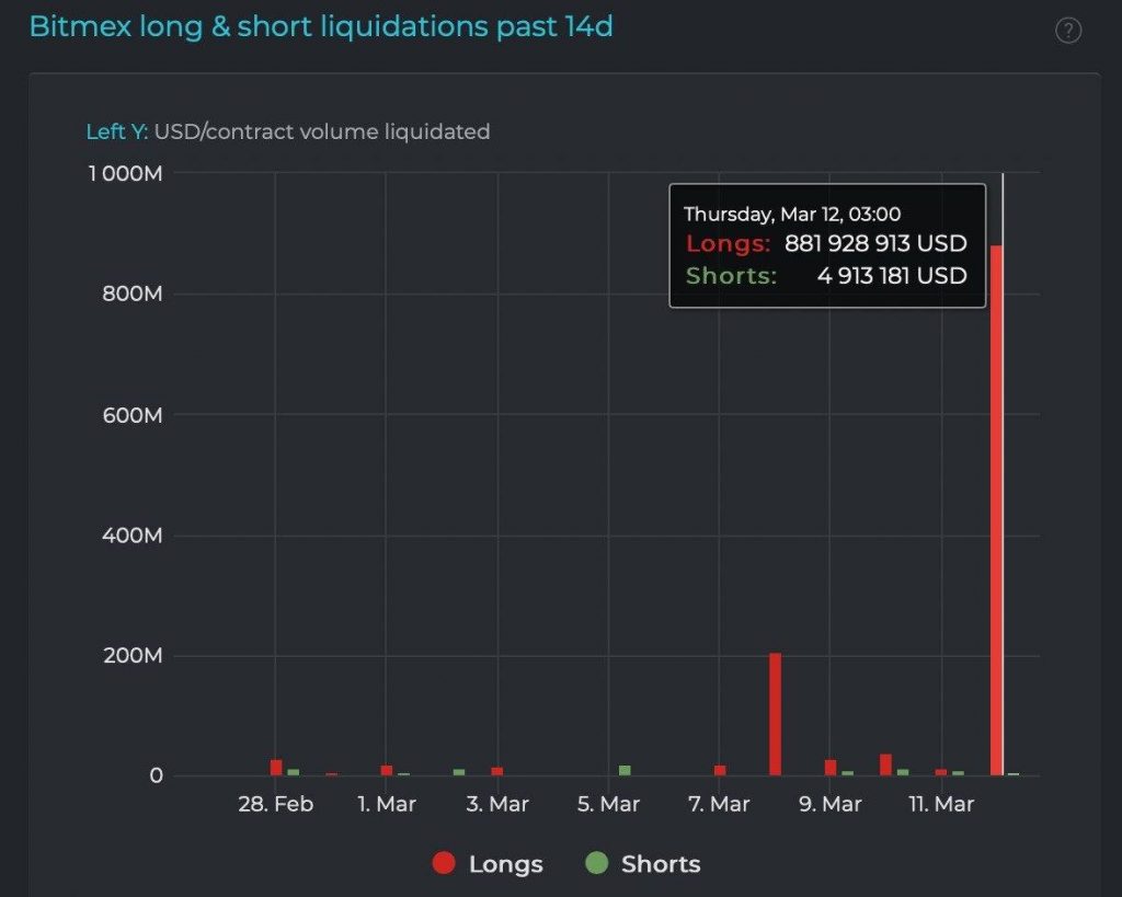 На криптодеривативной бирже BitMEX ликвидированы биткоин-позиции почти на $900 млн. Таким образом, был побит рекорд сентября 2019 года в $710 млн.
