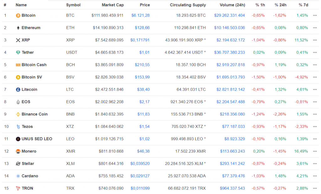 Ранее на этой неделе после заявления ФРС о намерении продолжить политику «неограниченного» количественного смягчения до тех пор, пока экономика не восстановится после вызванных пандемией коронавируса шоков, биткоин продемонстрировал рост, вплотную понявшись к $7000. Однако в дальнейшем цена пошла вниз – особенно резким оказалось падение в пятницу вечером, когда BTC за короткий отрезок ушел с $6700 к $6200. В субботу цена биткоина вплотную приближалась к $6000, а к моменту публикации находится на отметках около $6100.
