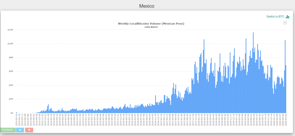 Напомним, в Латинской Америке объем торгов на LocalBitcoins стал расти на фоне карантина.