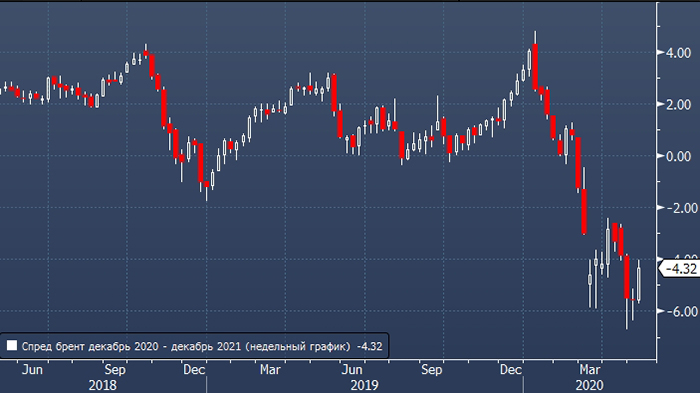 Аналитики банка предупреждают, что о завершении периода высокой волатильности говорить пока рано, однако видят хорошие шансы на возвращение WTI к $25 за баррель в этом месяце. В Goldman Sachs также ожидают, что по мере нормализации ситуации с запасами фьючерсная кривая брент в третьем квартале приобретёт более пологий характер относительно $30 за баррель, после чего цены ближних контрактов начнут расти и рынок перейдет в состояние бэквордации, которая усилится в течение второго квартала 2021 года.