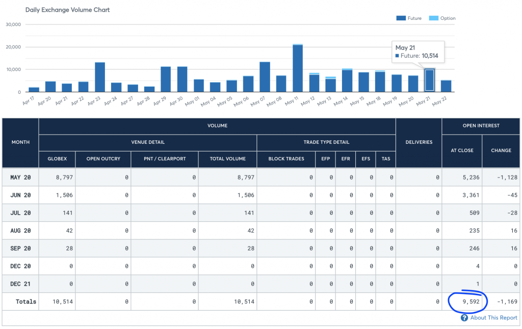Открытый интерес на росте биткоина уже дошел до отметки 23 марта, когда показатель составлял 9757 конрактов.