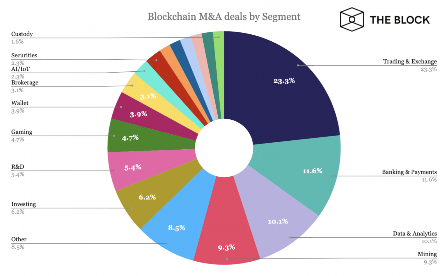 M&A-активность по различным сегментам биткоин- и блокчейн-индустрии.
