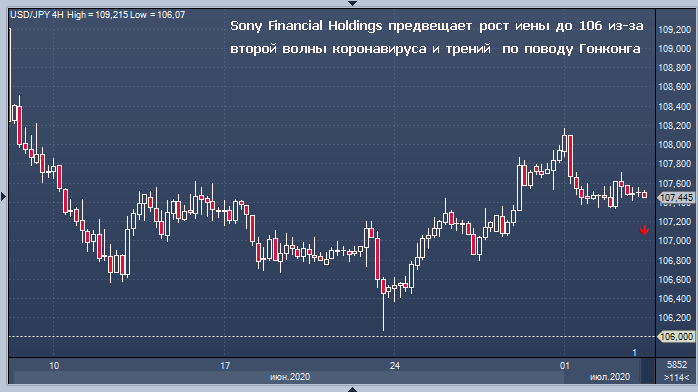 Доллар/иена может упасть на фоне усиления опасений по поводу роста случаев заражения коронавирусом и на фоне политической напряженности между Китаем и другими странами в отношении ситуации в Гонконге, по данным Sony Financial Holdings.