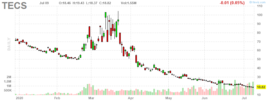 Для того, чтобы заработать на снижении акций технологического сектора можно использовать медвежий фонд на технологический сектор Direxion Daily Technology Bear 3X Shares (NYSE: TECS). Его динамика повторяет стратегию "шорта" технологического сектора с третьим плечом.