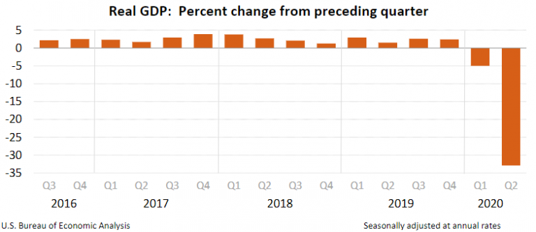 Экономика Соединенных Штатов во втором квартале упала на 32,9%. Это рекордный обвал со времен Второй мировой войны, подчеркнул главный экономист Deloitte Айра Калиш.