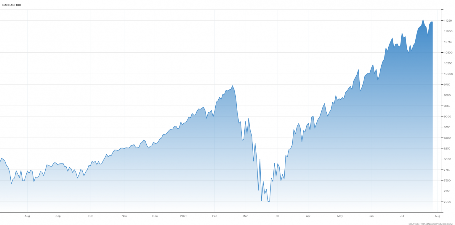 Несмотря на рекордный обвал американской экономики, индекс технологических компаний Nasdaq 100 не просто восстановился, но и вырос до невиданных ранее высот.