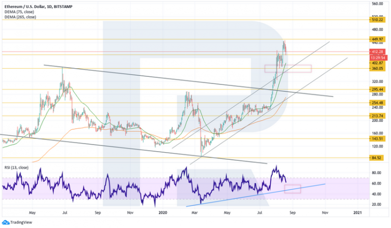 Котировки ETH/USD на дневном графике также смогли обновить локальный максимум. Однако уже сейчас актив корректируется.