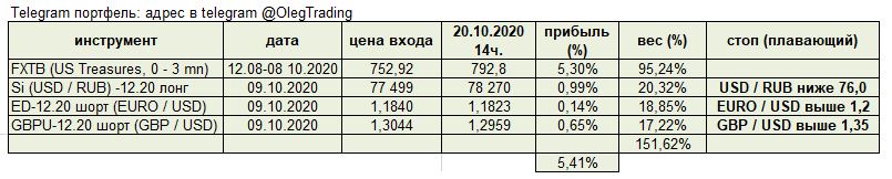 Telegram портфель (2 волна, на страхе растет индекс доллара, поэтому портфель именно такой).