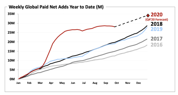 Карантинные меры. Большинство компании фонда - бенефициары карантина, так как именно продукты и услуги этих компаний пользуются популярностью во время карантина. Ужесточение карантинных мер по всему миру принуждает людей все чаще пользоваться интернетом и ИТ-продуктами, что было проверено первой волной коронавируса. Netflix является отличным примером, так компания ожидает прирост пользователей на 3,5 млн больше, чем в третьем квартале 2020 (2,5млн). Однако из-за увеличения масштабов пандемии мы ждем прирост пользователей на 7-8 млн в 4 квартале и рост выручки более 23% год к году. Сейчас только начало второй волны коронавируса, поэтому тенденция продолжиться как минимум до конца весны.
