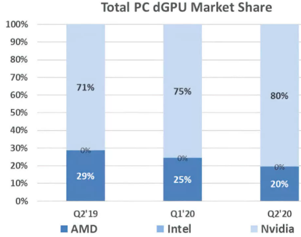 Лидеры в своих подотраслях. Безусловно в индекс входят компании уже с большой и лояльной аудиторией, что гарантирует компаниям устойчивое положение и денежные потоки. Огромный кэш позволяет покупать конкурентов, создавать новые продукты и увеличивать долю рынка в своих сферах. Возьмем в пример Nvidia, которая увеличила долю на рынке дискретных GPU до 80% во 2 квартале 2020.