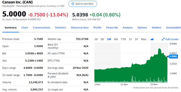 Китайская компания Canaan также удачно закрыла ноябрь — рост курса американских депозитарных расписок составил рекордные 140%.