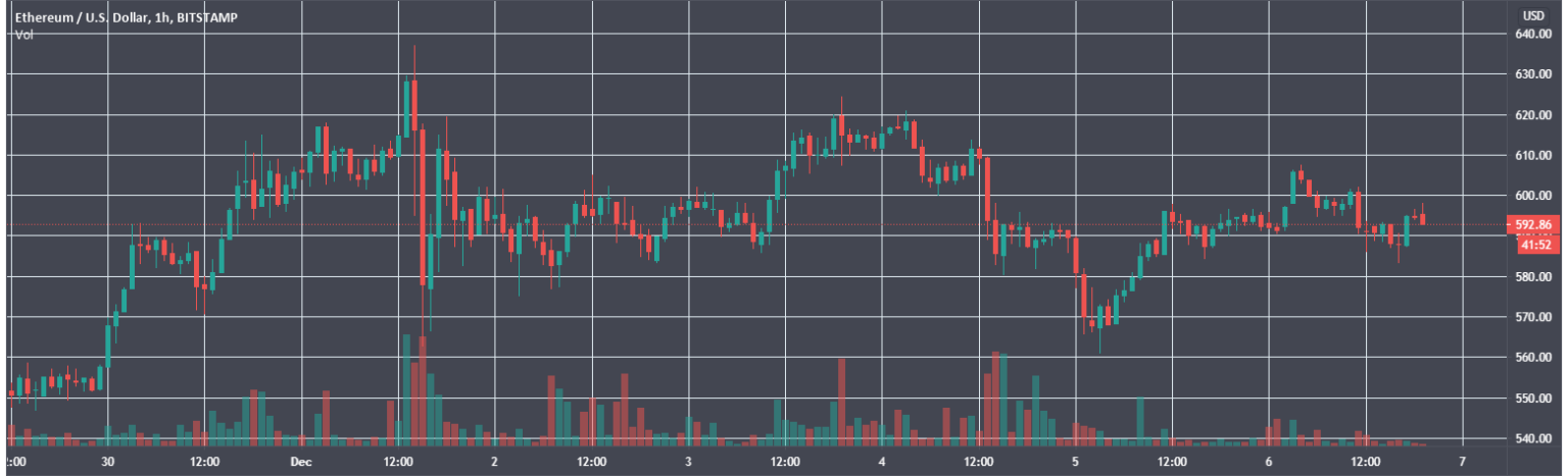 Котировки Ethereum (ETH) на платформе выросли до $636,58. На таком уровне монета торговалась в мае 2018 года.
