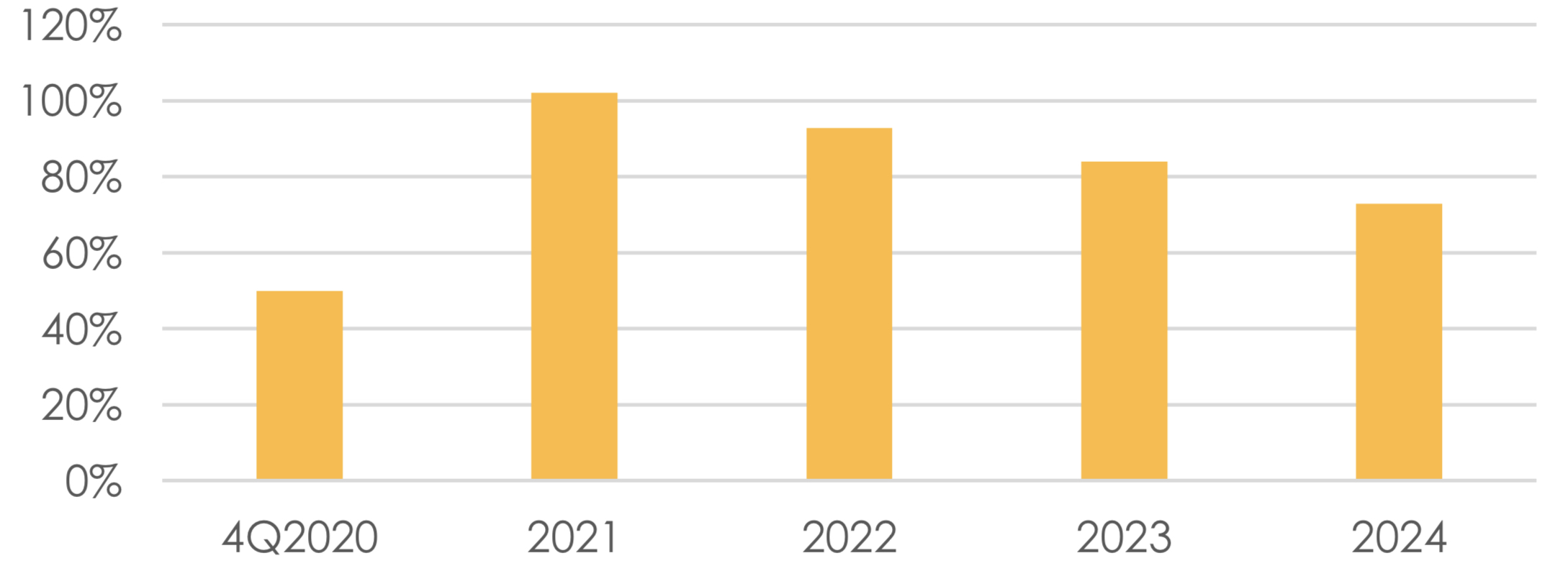 Последние 4 года Озон растет в 3-4 раза быстрее рынка онлайн ритейла, сейчас его доля составляет около 6%, мы ожидаем роста доли до 29% в течение ближайшие 4-5 лет.