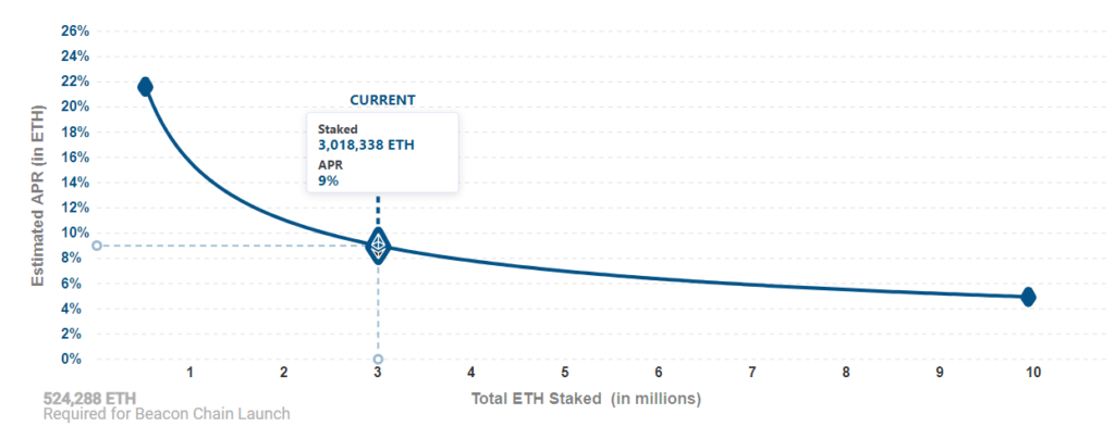 Объем заблокированных средств в депозитном контракте Ethereum 2.0 преодолел планку в 3 млн ETH ($5,31 млрд).